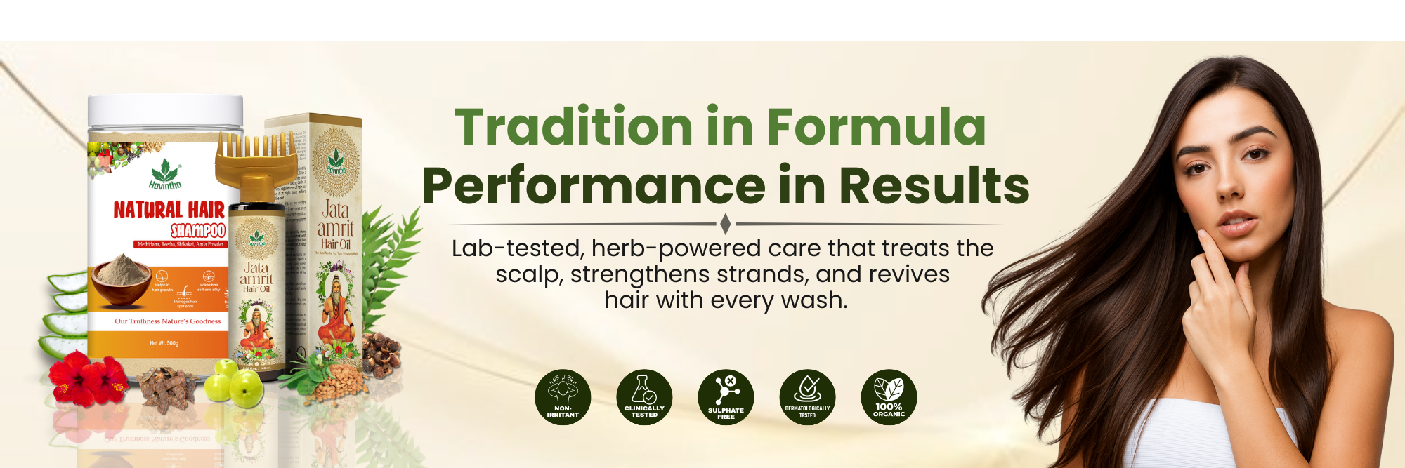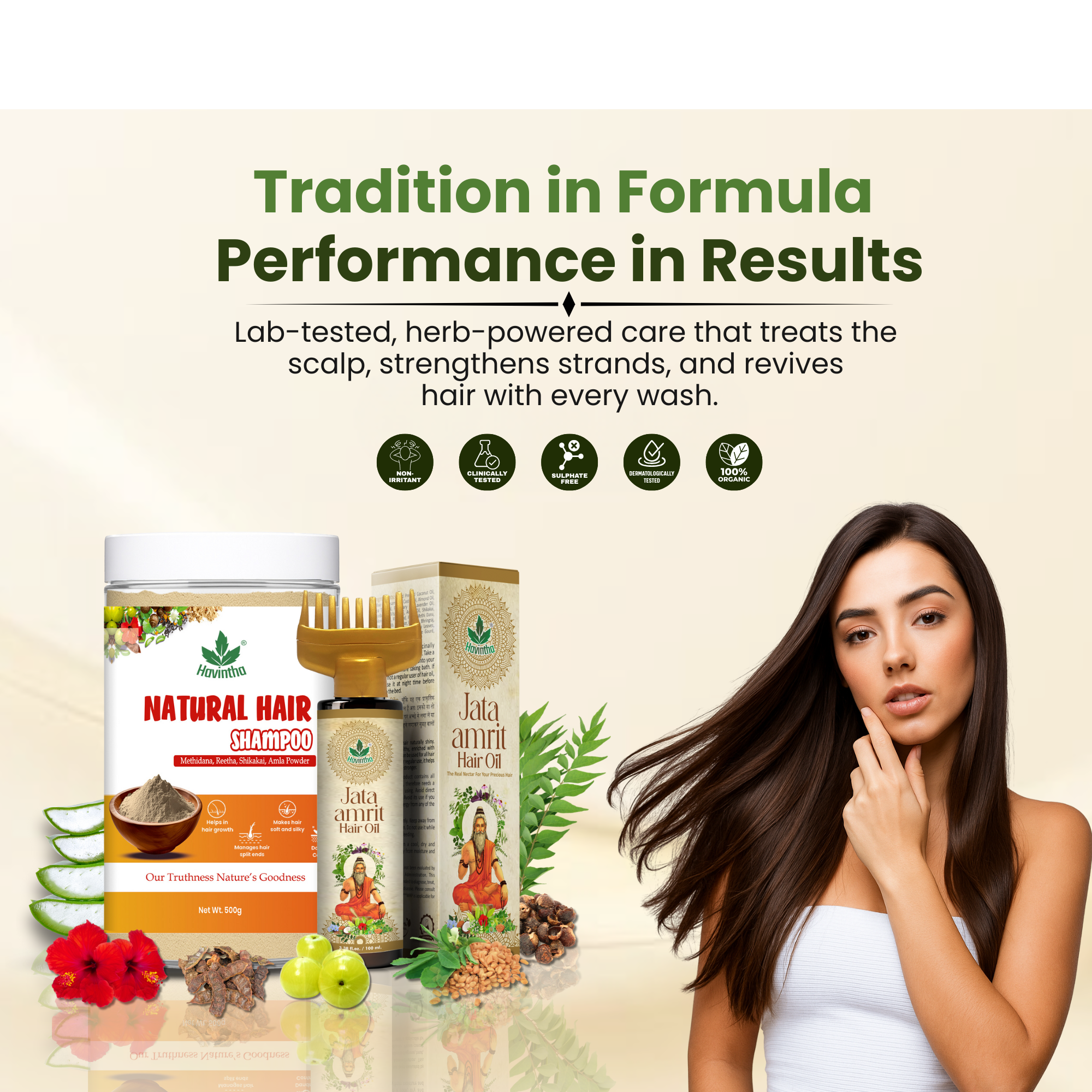 Havintha Natural Hair Shampoo (227g) for Reduce Hair Loss, Jata Amrit Hair Oil (100ml) for Hair Growth, And Face Body Wash Ubtan Powder (227g) for Skin Care- Regular price